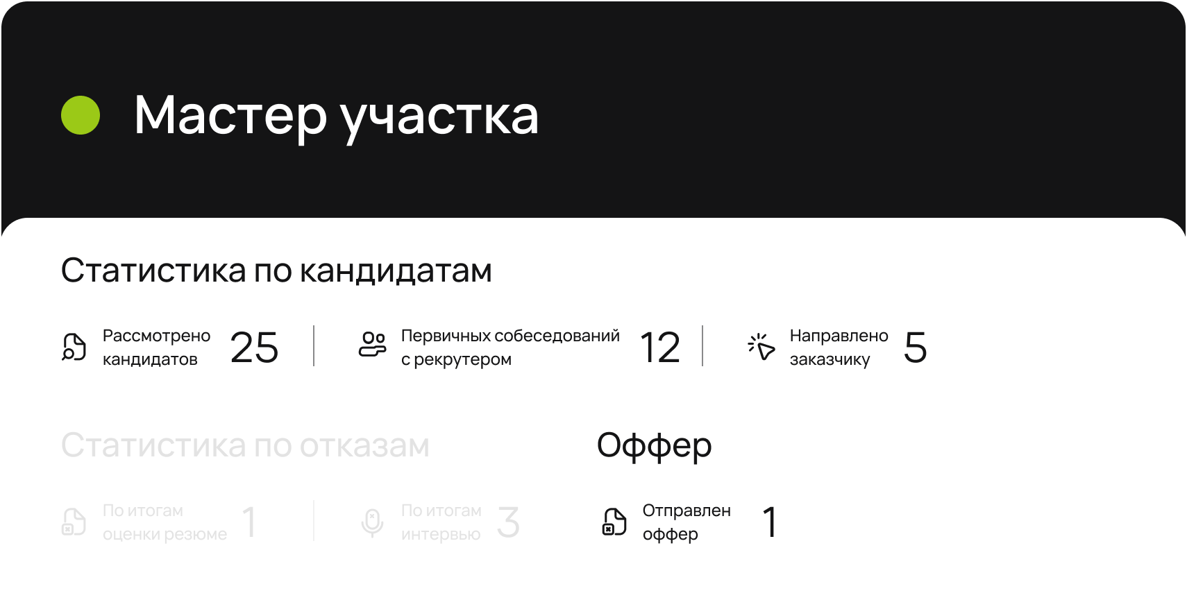 Вакансия закрыта за 3 недели. Кандидат успешно вышел на объект через 3 дня после оффера.