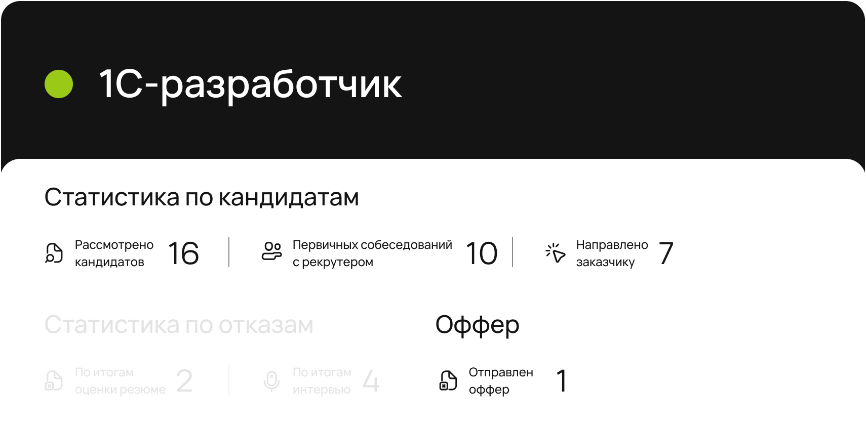 - Сжатых сроках. Клиенту требовалось быстро закрыть вакансию из-за ухода предыдущего сотрудника.