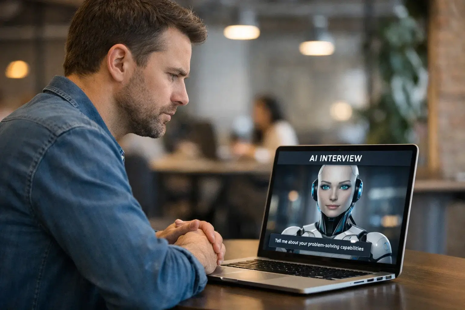 Предложение пройти собеседование с ИИ после предварительного общения с живым человеком в чате или во время видеозвонка: